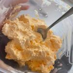 In the same mixing bowl, beat softened cream cheese with the powdered sweetener until light and fluffy. Blend thoroughly. Then add about one-third of the whipped cream to this mixture and beat again until well combined. For added flavor, a dash of vanilla extract can be mixed in at this point.