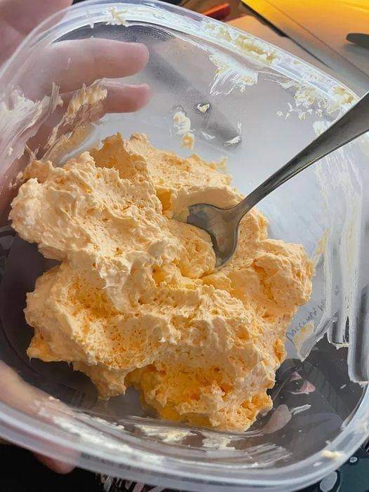 Sprinkle in the orange Jello powder. Beat again until the color is even and fully blended.