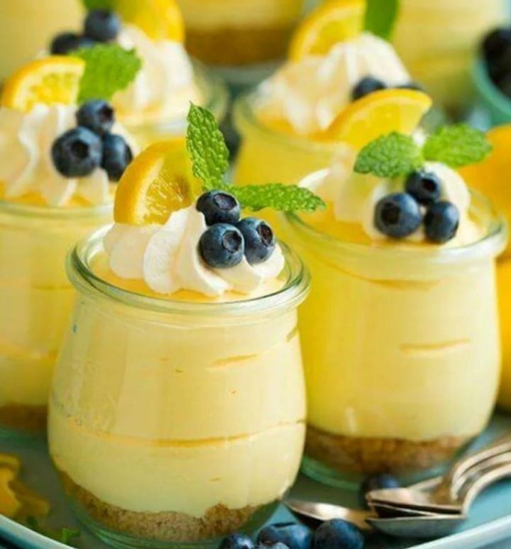 Spoon or pipe the lemon mixture into the prepared dessert cups. Refrigerate for at least one hour, or preferably overnight, to allow the flavors to meld.
